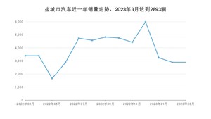 2023年3月,盐城市汽车总销量为2893辆,同比下降14.66%,环比持平。2022年03月-2023年03月份,盐城市总销量为49617辆,同比下降32.84%。在最近1年中,盐城市销量在2022年12月达到最高,销量为5979辆。