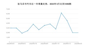 2023年3月,驻马店市汽车总销量为1986辆,同比下降33.33%,环比持平。2022年03月-2023年03月份,驻马店市总销量为41482辆,同比下降33.77%。在最近1年中,驻马店市销量在2022年12月达到最高,销量为6176辆。