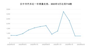 2023年3月,汉中市汽车总销量为716辆,同比下降7.85%,环比持平。2022年03月-2023年03月份,汉中市总销量为18051辆,同比下降42.18%。在最近1年中,汉中市销量在2022年12月达到最高,销量为3248辆。