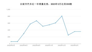 2023年3月,白城市汽车总销量为355辆,同比增长472.58%,环比持平。2022年03月-2023年03月份,白城市总销量为5105辆,同比下降50.2%。在最近1年中,白城市销量在2022年12月达到最高,销量为808辆。
