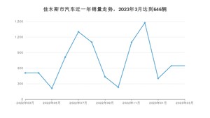 2023年3月,佳木斯市汽车总销量为646辆,同比增长27.17%,环比持平。2022年03月-2023年03月份,佳木斯市总销量为9366辆,同比下降50.76%。在最近1年中,佳木斯市销量在2022年12月达到最高,销量为1475辆。