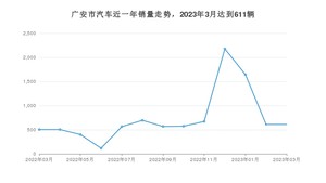 2023年3月,广安市汽车总销量为611辆,同比增长20.99%,环比持平。2022年03月-2023年03月份,广安市总销量为9645辆,同比下降53.23%。在最近1年中,广安市销量在2022年12月达到最高,销量为2178辆。