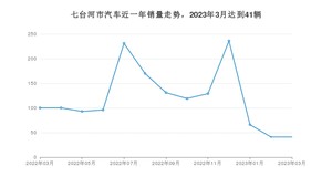 2023年3月,七台河市汽车总销量为41辆,同比下降59%,环比持平。2022年03月-2023年03月份,七台河市总销量为1553辆,同比下降68.92%。在最近1年中,七台河市销量在2022年12月达到最高,销量为236辆。