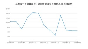在国内市场上,三菱,在2023年3月的销量为683辆,同比下降46.26%,环比持平。2022年03月-2023年03月份,三菱累计销量为14459辆,较去年同期下降77.23%。