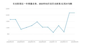 在国内市场上,长安凯程,在2023年3月的销量为2172辆,同比增长31.56%,环比持平。2022年03月-2023年03月份,长安凯程累计销量为16708辆,较去年同期增长42.85%。