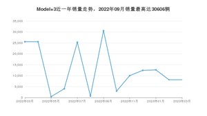 2023年3月,Model 3销量为8146辆,同比下降68.11%,环比持平。2022年03月-2023年03月份,Model 3销量为166560辆,同比增长6.1%。