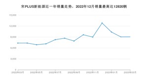 2023年3月,宋PLUS新能源销量为9041辆,同比增长23.36%,环比增长0.16%。2022年03月-2023年03月份,宋PLUS新能源销量为113293辆,同比下降3.01%。