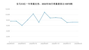 2023年3月,宝马X3销量为7249辆,同比下降4.54%,环比持平。2022年03月-2023年03月份,宝马X3销量为105566辆,同比下降29.3%。
