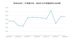 2023年3月,奔驰GLB销量为4724辆,同比增长31.55%,环比持平。2022年03月-2023年03月份,奔驰GLB销量为52673辆,同比下降5.63%。
