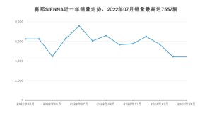 2023年3月,赛那SIENNA销量为4418辆,同比下降29.15%,环比持平。2022年03月-2023年03月份,赛那SIENNA销量为75793辆,同比增长379.22%。