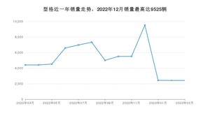 2023年3月,型格销量为2418辆,同比下降45.17%,环比持平。2022年03月-2023年03月份,型格销量为67034辆,同比增长337.02%。