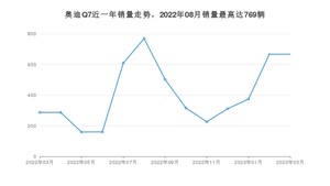 2023年3月,奥迪Q7销量为667辆,同比增长132.4%,环比持平。2022年03月-2023年03月份,奥迪Q7销量为5335辆,同比下降62.86%。