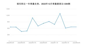 2023年3月,福克斯销量为664辆,同比增长1.07%,环比持平。2022年03月-2023年03月份,福克斯销量为9781辆,同比下降53.96%。