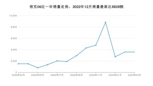 2023年3月,领克06销量为3588辆,同比增长137.77%,环比持平。2022年03月-2023年03月份,领克06销量为39829辆,同比下降15.79%。