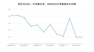 2023年3月,雪铁龙C6销量为19辆,同比下降77.11%,环比持平。2022年03月-2023年03月份,雪铁龙C6销量为600辆,同比下降86.74%。
