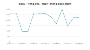 2023年3月,威驰销量为2236辆,同比下降13.17%,环比增长0.95%。2022年03月-2023年03月份,威驰销量为27677辆,同比下降53%。