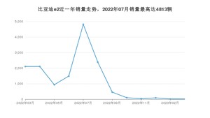 2023年3月,比亚迪e2销量为19辆,同比下降99.1%,环比持平。2022年03月-2023年03月份,比亚迪e2销量为14544辆,同比下降60.72%。