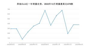 2023年3月,奔驰CLA销量为379辆,同比增长28.91%,环比持平。2022年03月-2023年03月份,奔驰CLA销量为4889辆,同比下降56.55%。