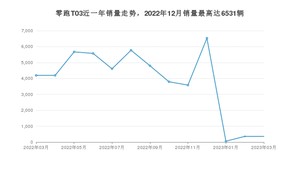 2023年3月,零跑T03销量为360辆,同比下降91.42%,环比持平。2022年03月-2023年03月份,零跑T03销量为49499辆,同比增长1.27%。