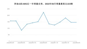 2023年3月,奔驰G级AMG销量为146辆,同比下降7.01%,环比持平。2022年03月-2023年03月份,奔驰G级AMG销量为1926辆,同比下降34.27%。