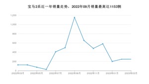 2023年3月,宝马2系销量为248辆,同比增长98.4%,环比持平。2022年03月-2023年03月份,宝马2系销量为4821辆,同比下降48.07%。