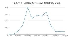 2023年3月,蔚来ET7销量为463辆,同比增长712.28%,环比持平。2022年03月-2023年03月份,蔚来ET7销量为19922辆,同比增长20%。
