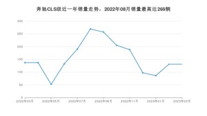 2023年3月,奔驰品牌总体销量达到47213辆,其中奔驰CLS级销量达到131辆,占品牌总销量的0.28%。