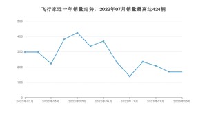 2023年3月,飞行家销量为168辆,同比下降43.43%,环比持平。2022年03月-2023年03月份,飞行家销量为3476辆,同比下降72.85%。