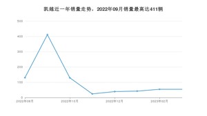2023年3月,凯越销量为54辆,环比持平。2022年03月-2023年03月份,凯越销量为883辆,同比下降75.24%。