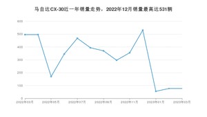 2023年3月,马自达CX-30销量为77辆,同比下降84.48%,环比持平。2022年03月-2023年03月份,马自达CX-30销量为4131辆,同比下降77.22%。