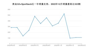 2023年3月,奥迪Q3 Sportback销量为109辆,同比下降61.62%,环比持平。2022年03月-2023年03月份,奥迪Q3 Sportback销量为3735辆,同比下降72.14%。