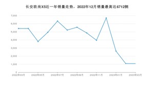2023年3月,长安欧尚X5销量为1078辆,同比下降80.08%,环比持平。2022年03月-2023年03月份,长安欧尚X5销量为57006辆,同比下降57.33%。