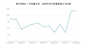 2023年3月,睿行M60销量为1401辆,同比增长36.42%,环比持平。2022年03月-2023年03月份,睿行M60销量为10684辆,同比增长465.29%。