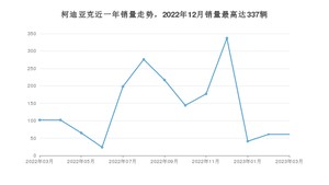 2023年3月,柯迪亚克销量为61辆,同比下降40.2%,环比持平。2022年03月-2023年03月份,柯迪亚克销量为1805辆,同比下降76.39%。