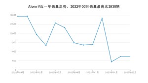 2023年3月,Aion V销量为735辆,同比下降74.98%,环比持平。2022年03月-2023年03月份,Aion V销量为23000辆,同比增长6.87%。