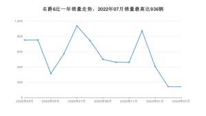 2023年3月,名爵6销量为142辆,同比下降81.14%,环比持平。2022年03月-2023年03月份,名爵6销量为7060辆,同比下降83.47%。