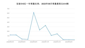 2023年3月,宝骏510销量为17辆,同比下降85.83%,环比持平。2022年03月-2023年03月份,宝骏510销量为1772辆,同比下降92.78%。