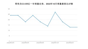 2023年3月,雪铁龙C3-XR销量为13辆,同比下降45.83%,环比持平。2022年03月-2023年03月份,雪铁龙C3-XR销量为193辆,同比下降91.93%。