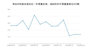 2023年3月,探岳GTE插电混动销量为136辆,同比下降48.68%,环比持平。2022年03月-2023年03月份,探岳GTE插电混动销量为3352辆,同比下降22.55%。