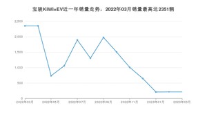 2023年3月,宝骏KiWi EV销量为211辆,同比下降91.03%,环比持平。2022年03月-2023年03月份,宝骏KiWi EV销量为15447辆,同比增长401.69%。