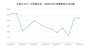 2023年3月,五菱之光销量为2219辆,同比下降15.18%,环比持平。2022年03月-2023年03月份,五菱之光销量为21461辆,同比增长324.55%。