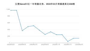 2023年3月,五菱NanoEV销量为137辆,同比下降85.86%,环比持平。2022年03月-2023年03月份,五菱NanoEV销量为5058辆,同比下降26.92%。