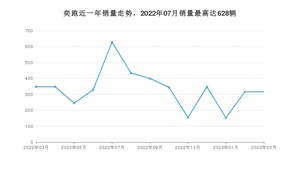 2023年3月,奕跑销量为316辆,同比下降9.2%,环比持平。2022年03月-2023年03月份,奕跑销量为4363辆,同比下降77.13%。