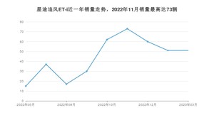 2023年3月,星途追风ET-i销量为51辆,环比持平。2022年03月-2023年03月份,星途追风ET-i销量为396辆,