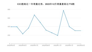 2023年3月,KX3傲跑销量为305辆,同比下降22.98%,环比持平。2022年03月-2023年03月份,KX3傲跑销量为5108辆,同比下降79.82%。