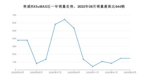 2023年3月,荣威RX5 MAX销量为148辆,同比下降60.85%,环比持平。2022年03月-2023年03月份,荣威RX5 MAX销量为3392辆,同比下降82.29%。