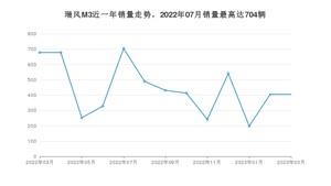 2023年3月,瑞风M3销量为405辆,同比下降40.27%,环比持平。2022年03月-2023年03月份,瑞风M3销量为5763辆,同比下降73.38%。
