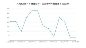2023年3月,风光500销量为29辆,同比下降86.06%,环比持平。2022年03月-2023年03月份,风光500销量为2276辆,同比下降91.84%。