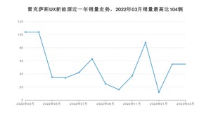 2023年3月,雷克萨斯UX新能源销量为55辆,同比下降47.12%,环比持平。2022年03月-2023年03月份,雷克萨斯UX新能源销量为670辆,同比下降89.84%。