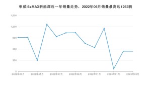 2023年3月,荣威i6 MAX新能源销量为541辆,同比下降40.61%,环比持平。2022年03月-2023年03月份,荣威i6 MAX新能源销量为10084辆,同比下降18.99%。